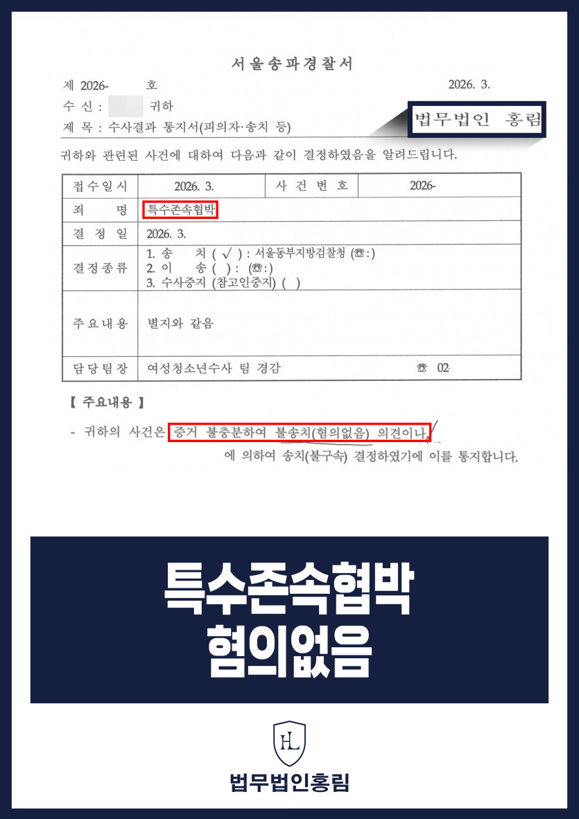 특수존속협박 혐의없음 - 가족 간 다툼으로 인한 고소 불송치 성공 2026.04.07