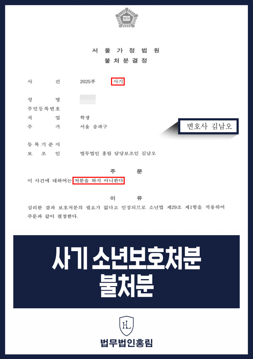 사기 소년보호처분 불처분 - 중고거래 사기, 변호인 조력으로 보호처분 없이 일상 회복 2026.04.20