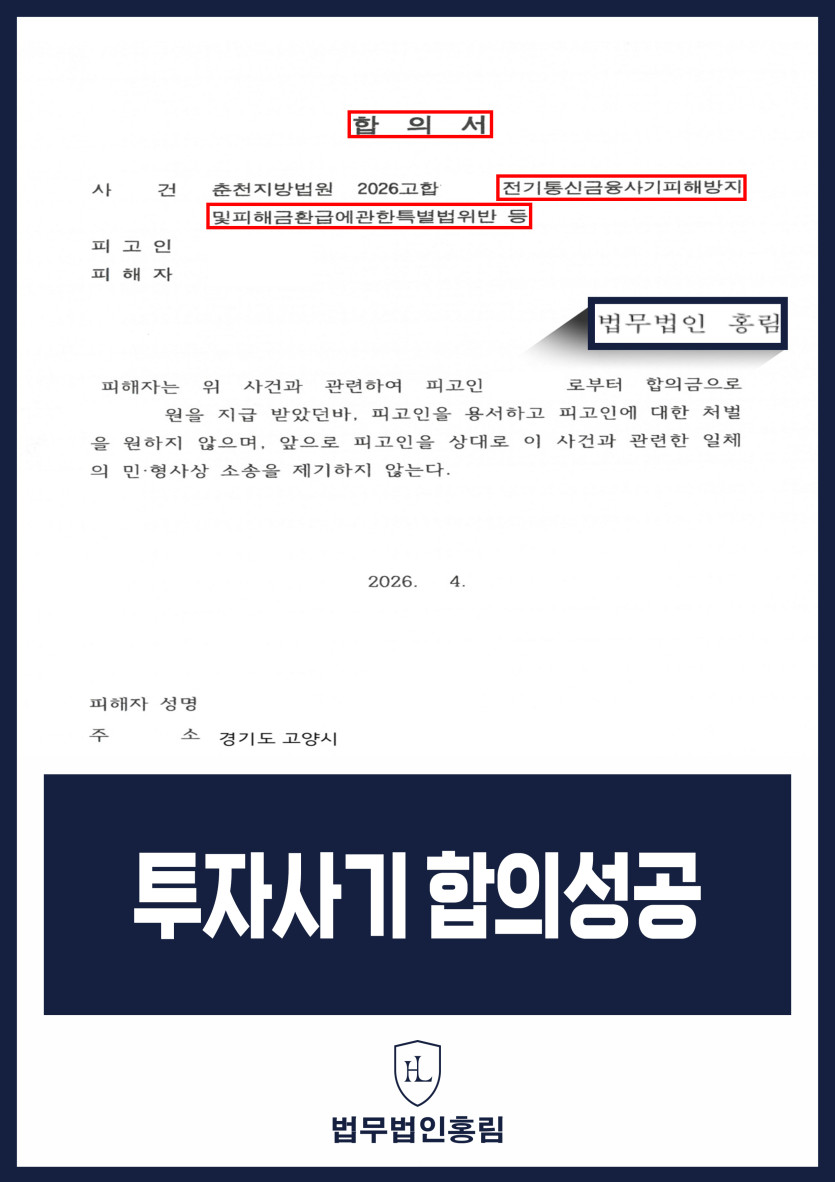 투자사기 합의성공 - 보이스피싱 피해 당했지만 고소해 검거 후 합의 성공 2026.04.24