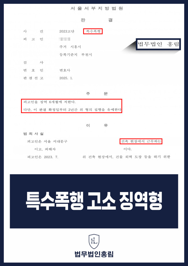 특수폭행 성공사례 - 건설노동 현장에서 특수폭행 당해 고소한 결과 징역형 이끈 사례 2025.04.21