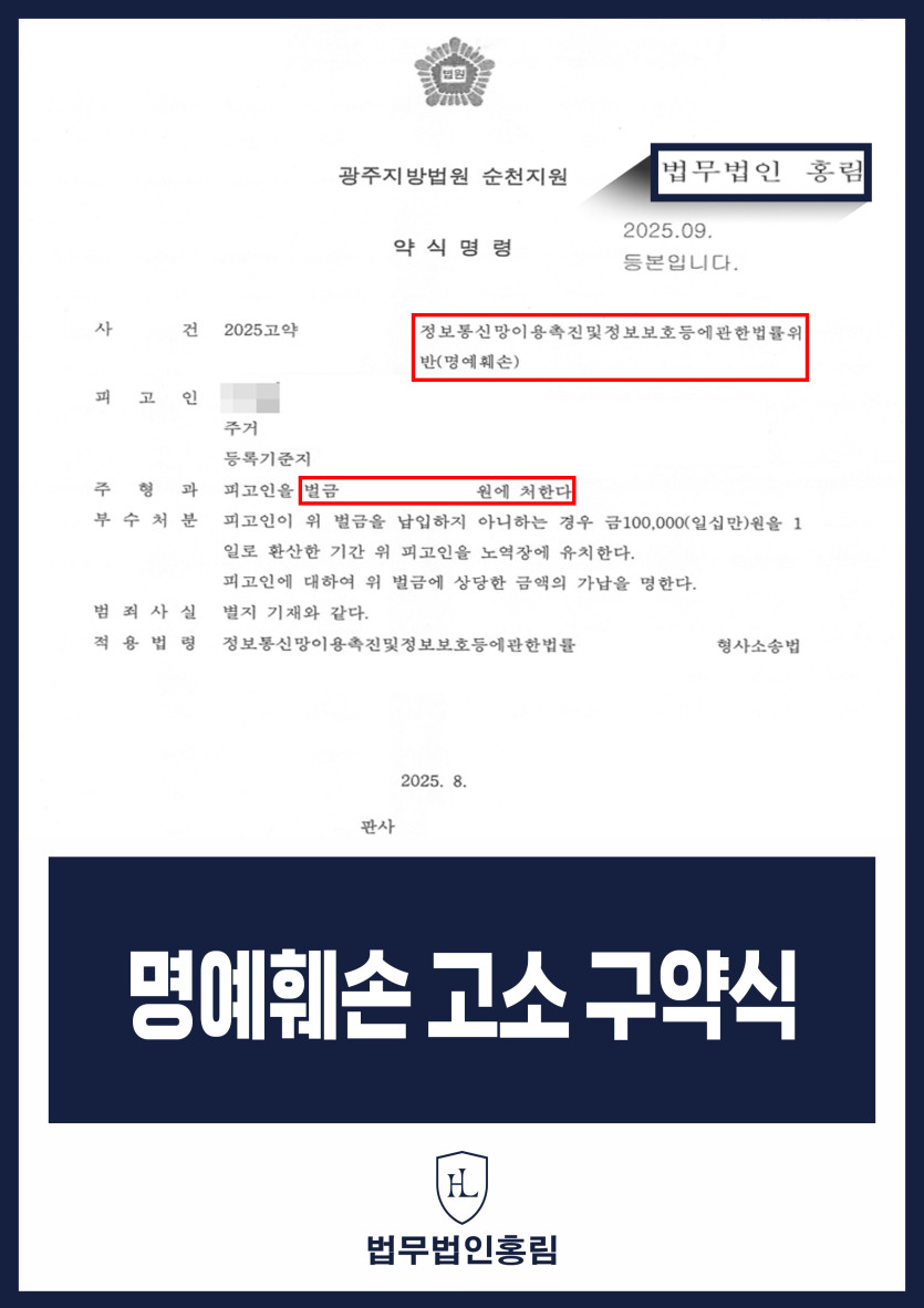검찰은 법무법인 홍림이 주장한 법리와 증거를 바탕으로 B씨를 정보통신망법 위반(명예훼손) 혐의로 기소했으며, 법원은 B씨에게 벌금형을 선고하였습니다.