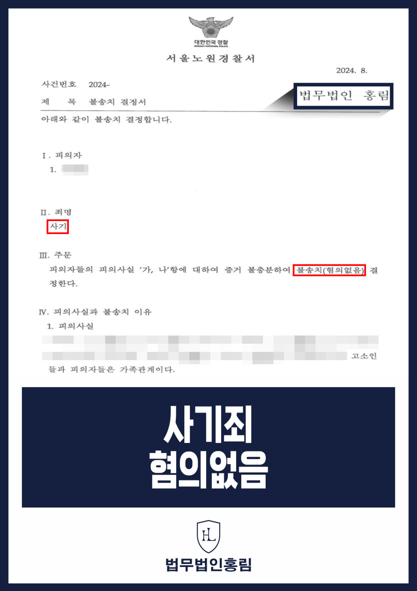 결과적으로, 의뢰인의 행위가 범죄를 구성하지 않는다고 판단하여 '혐의없음'으로 사건을 종결했습니다.