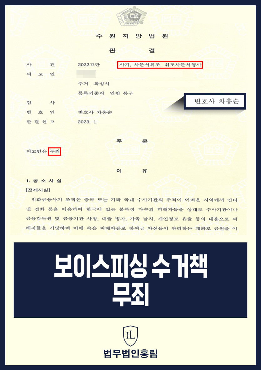 보이스피싱 수거책 무죄 - 다수의 피해자에게 수천만원 수거했지만 미필적 고의 입증해 무죄 성공 2025.10.15