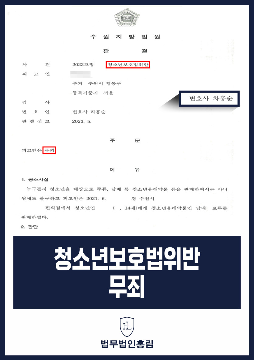 청소년보호법위반 무죄 - 편의점에서 일하다가 중학생에게 담배 판매했지만 무죄 성공 2025.10.15