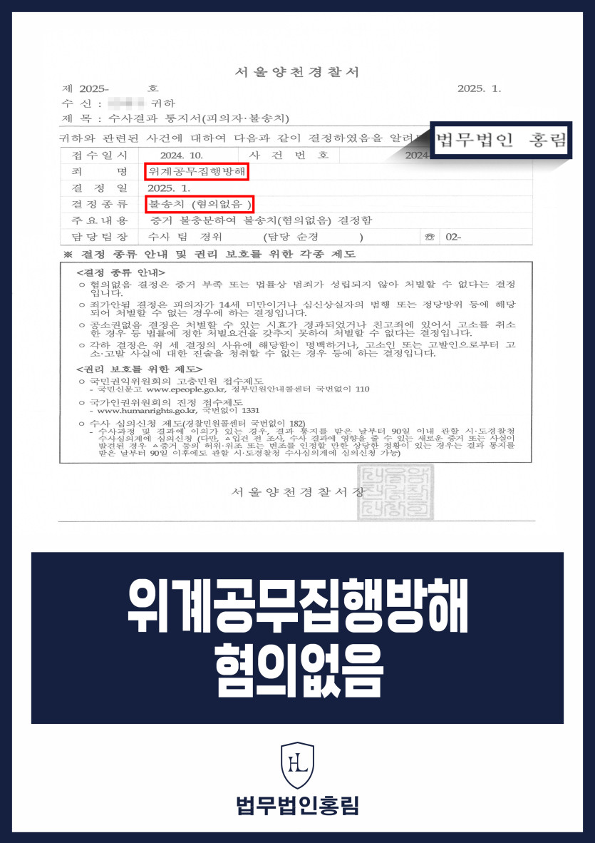 그 결과 경찰에서는 변호인의 요청을 받아들여 사건에 대해 증거가 없다고 보고 '혐의없음 종결' 하였습니다