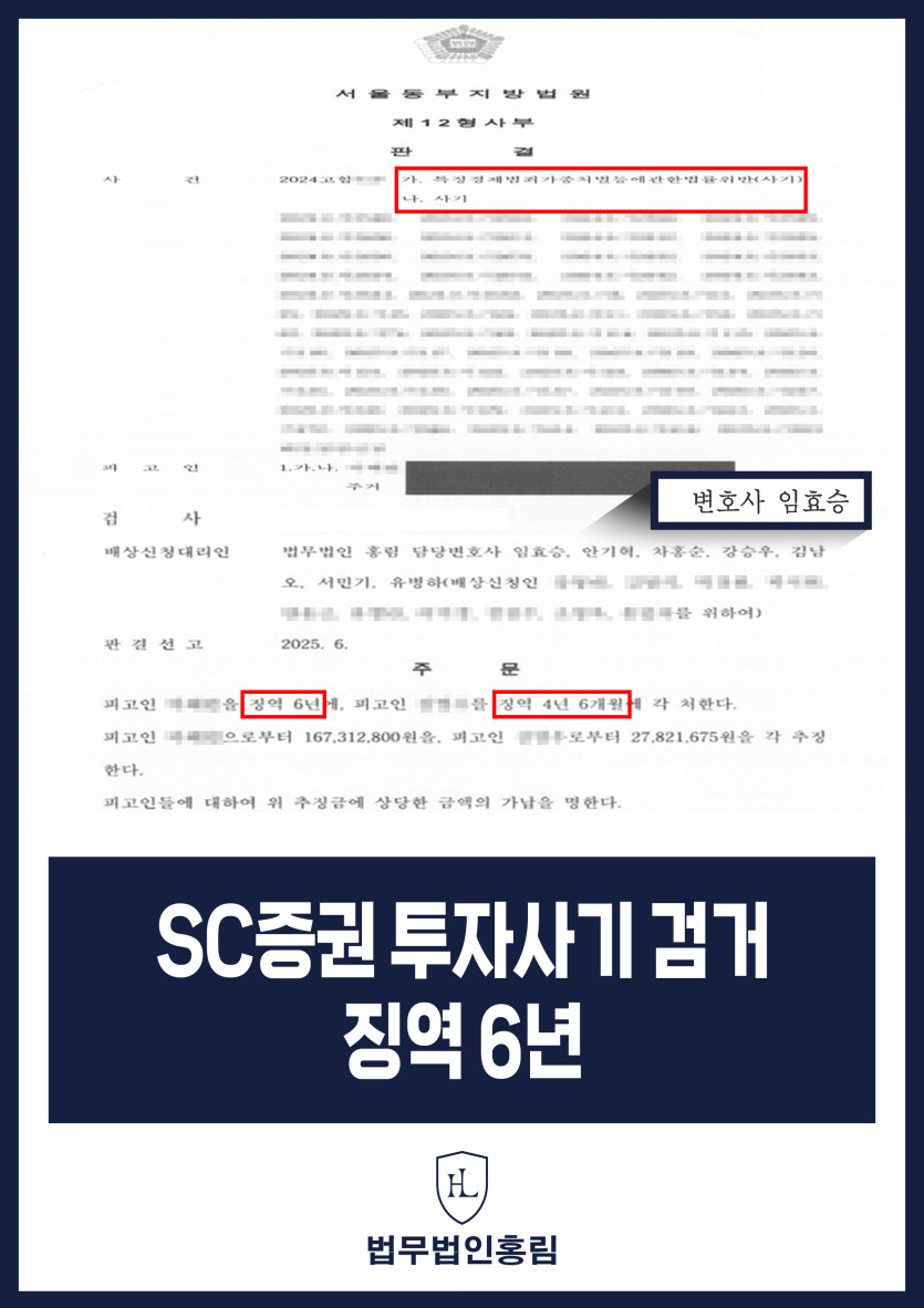 SC증권 투자사기 검거 징역 6년 - 투자사기 사칭 조직 단체 고소해 검거 후 실형 이끈 사례 2025.06.30