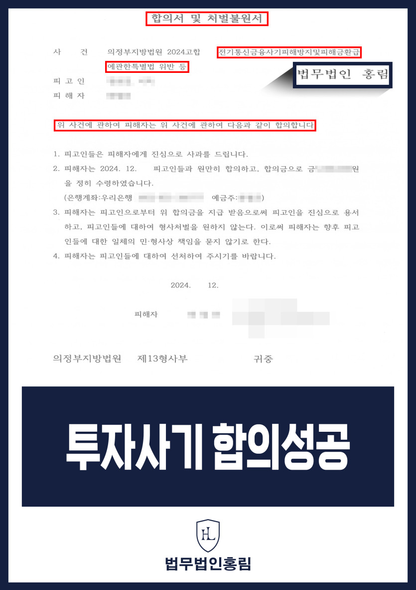 투자사기 합의성공 - 피해자 대리해 투자사기 조직원 구공판 성공 후 합의 이끌어낸 사례 2025.06.16