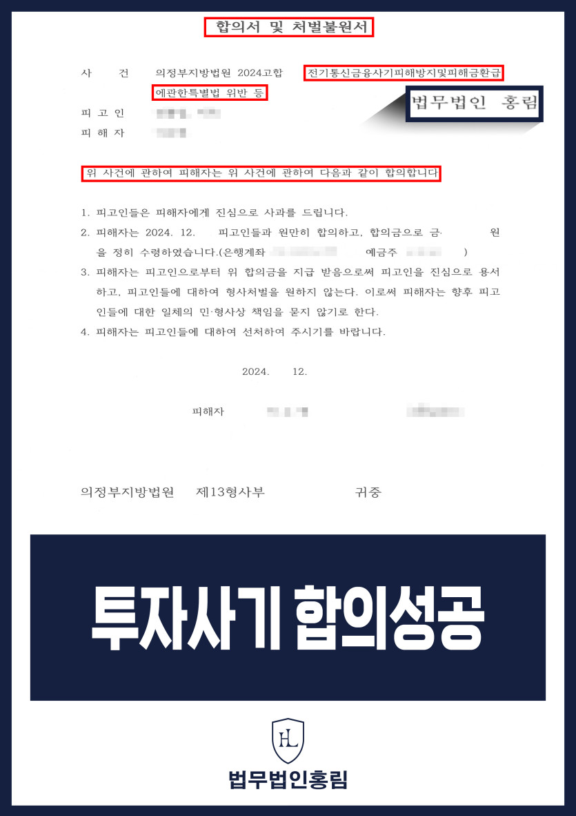 투자사기 합의성공 - 피해자 대리해 투자사기 조직원 구공판 성공 후 합의 이끌어낸 사례 2025.06.16