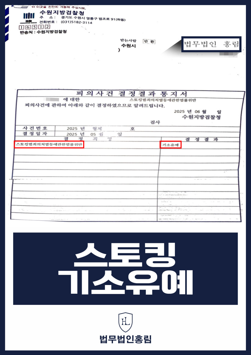 스토킹 기소유예 - 전 여친이 고소했지만 변호인 조력으로 합의 이끌어 기소유예로 사건 종결 2025.06.16