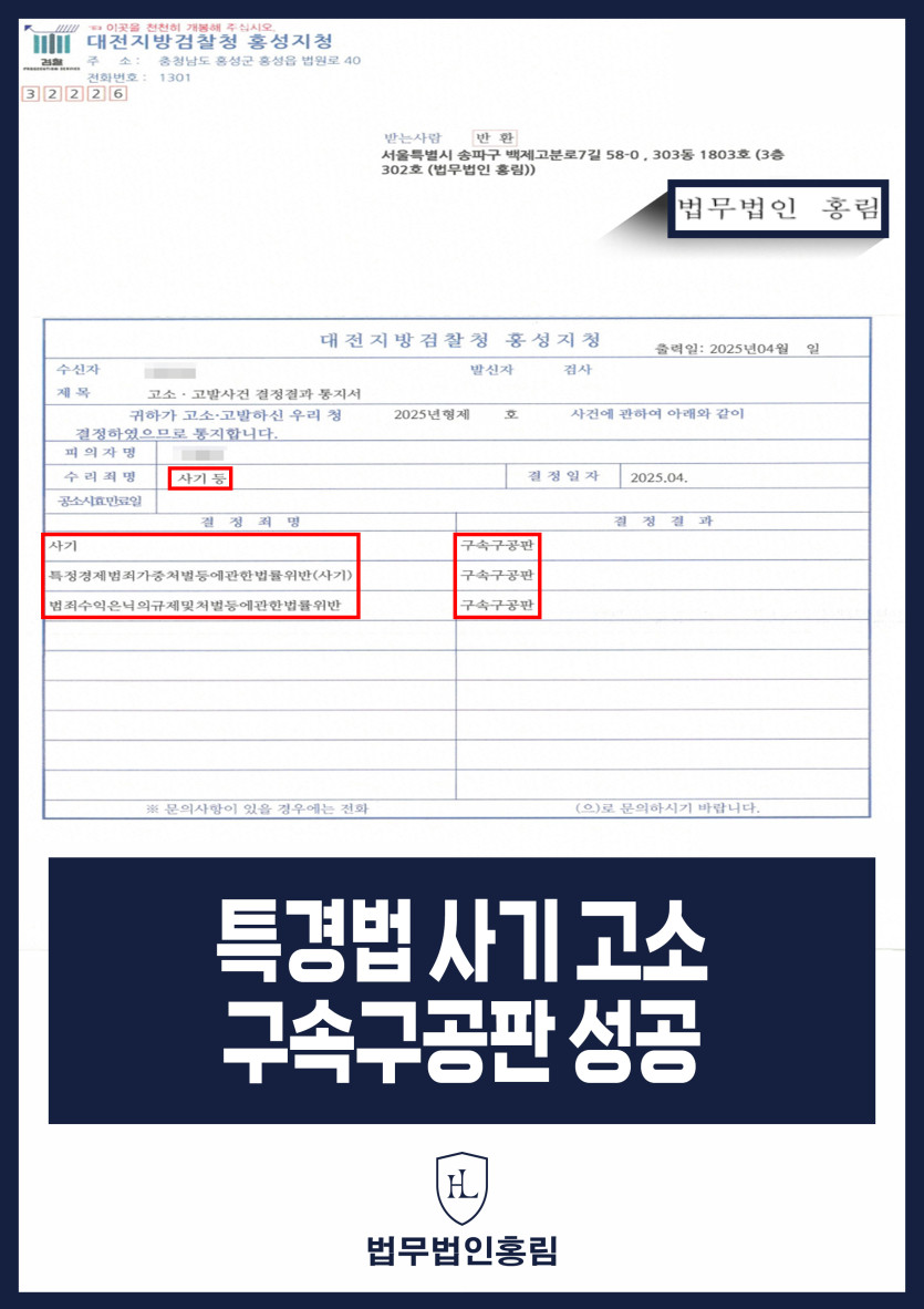 특경법 사기 고소 구속구공판 성공 - 투자사기 조직 고소해 구속 구공판 이끌어낸 사례 2025.06.16