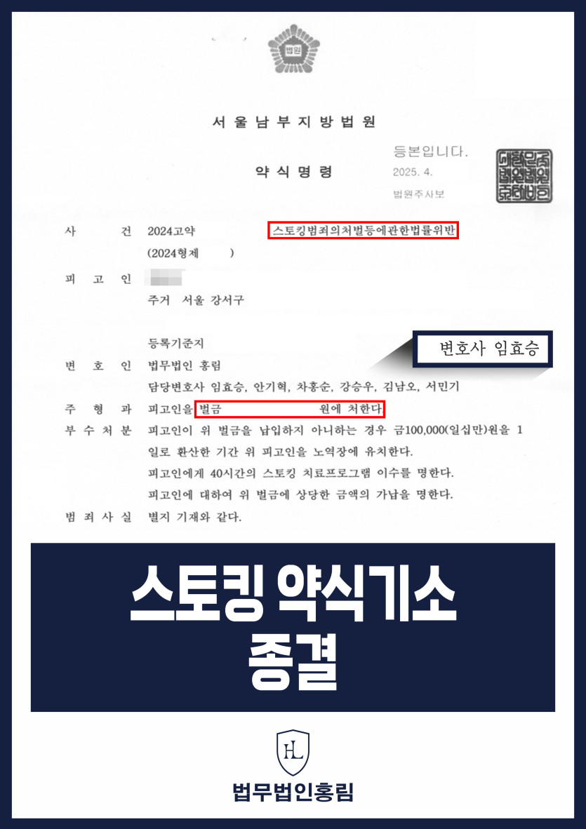 결국 법원은 A씨에게 벌금형을 명령하고, 사건은 스토킹 약식기소 종결로 마무리 었습니다.